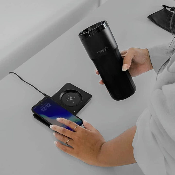 Der Muggo-Becher ist für den Einsatz im Freien konzipiert und hält Ihren Kaffee heiß. Der Muggo Travel Mug ist ebenfalls mit einer Basis ausgestattet, mit der Sie Ihr Smartphone oder Ihre Kopfhörer per Induktion aufladen können. Mit dem intelligenten Temperaturbecher können Sie eine genaue Trinktemperatur einstellen, damit Ihr Kaffee weder